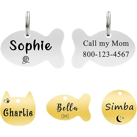 Amazon Com Ultra Joys Cat Id Tag Cat Tags Personalized Cat Collar With Name Tag Dog Tag Pet Id Tag Mirror Polished Stainless Steel Cat Tag Both Side Engravable Fish Tag In Silver